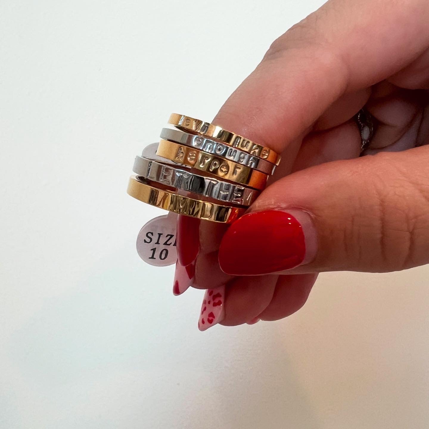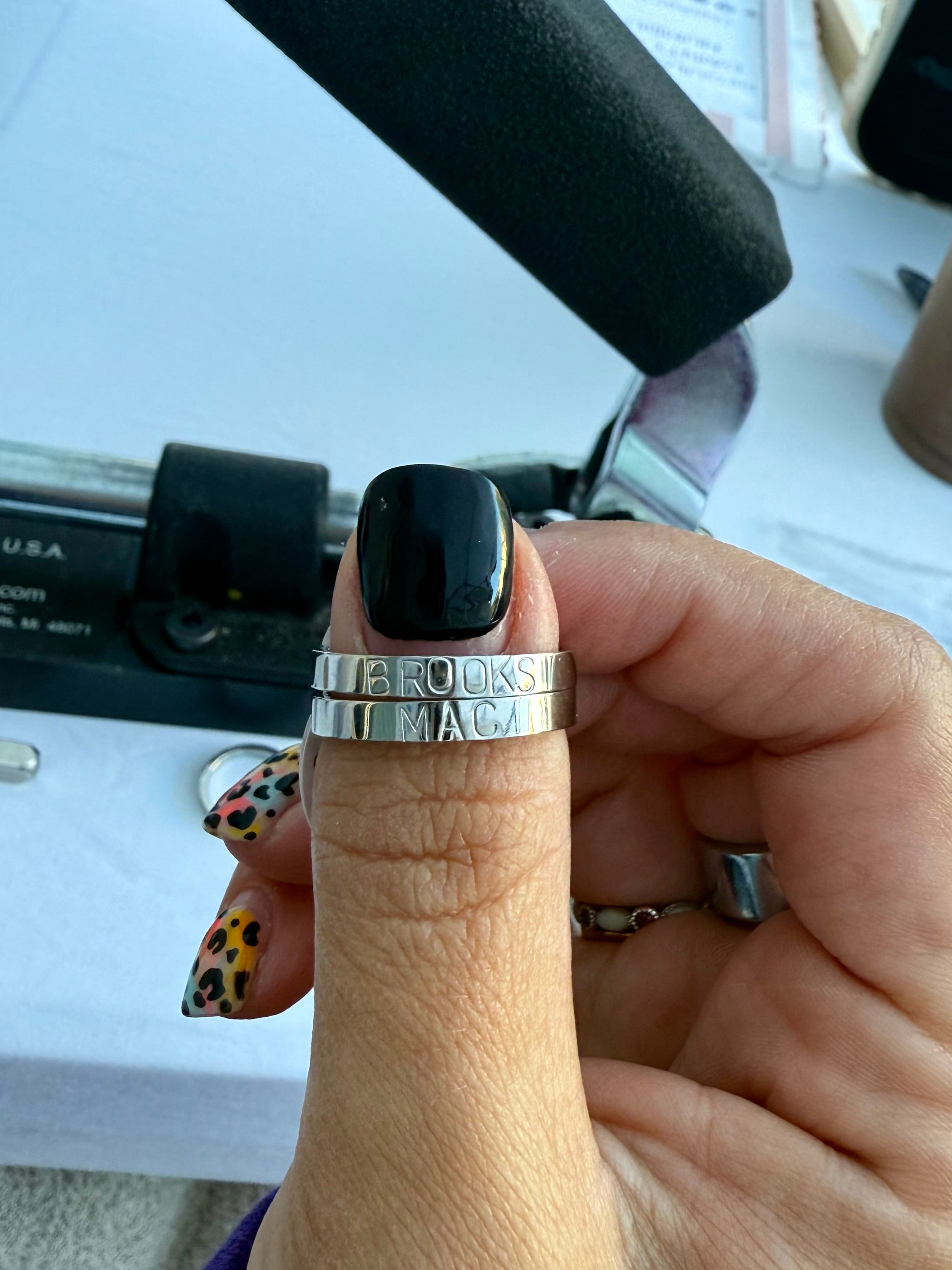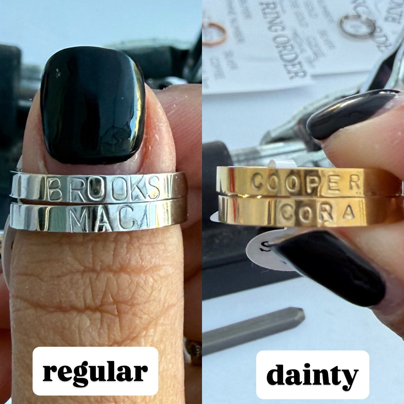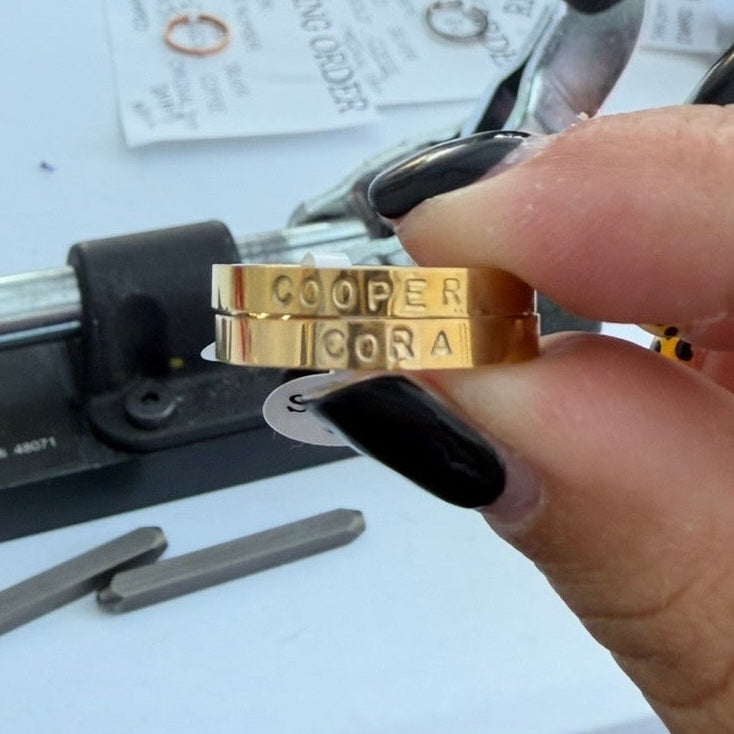 Every ring is hand stamped one letter at a time, making each piece perfectly imperfect and truly one of a kind.